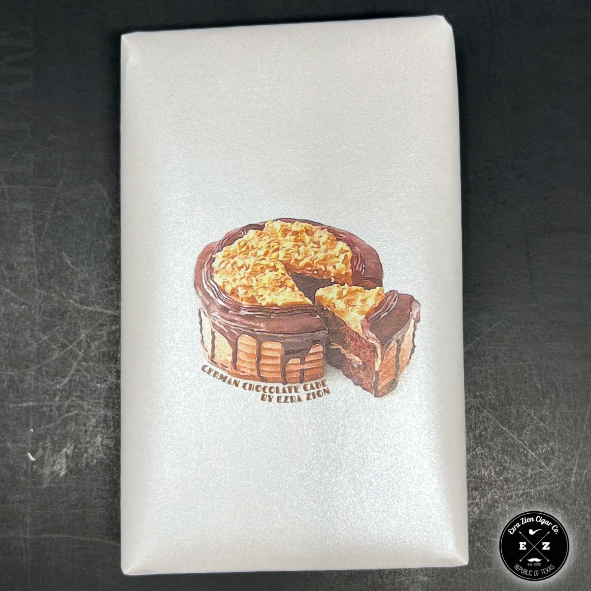 GERMAN CHOCOLATE CAKE is a full-bodied, medium-strength 6x52 toro with a broom foot. The wrapper is a 10-year-aged Corojo claro leaf. Fillers are a closely guarded secret...but all tobaccos are 8-12 years aged!